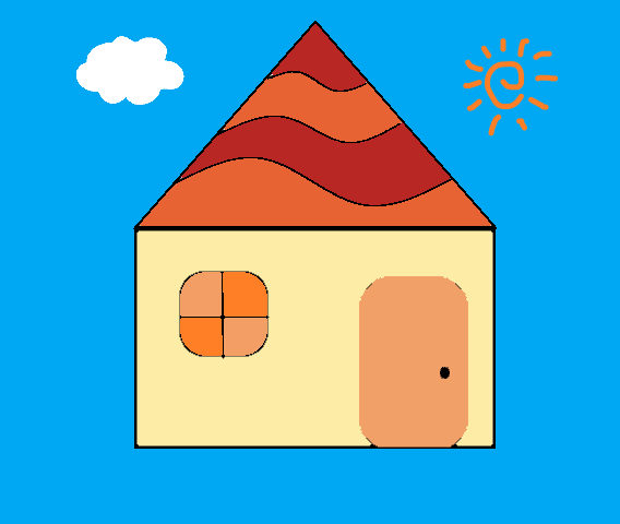 屋根がカラフルで、青空に似合うオレンジ色の家です!